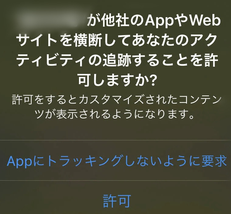 これはIOS14から搭載されたもので、要は追跡を許可するかどうかを聞かれています。